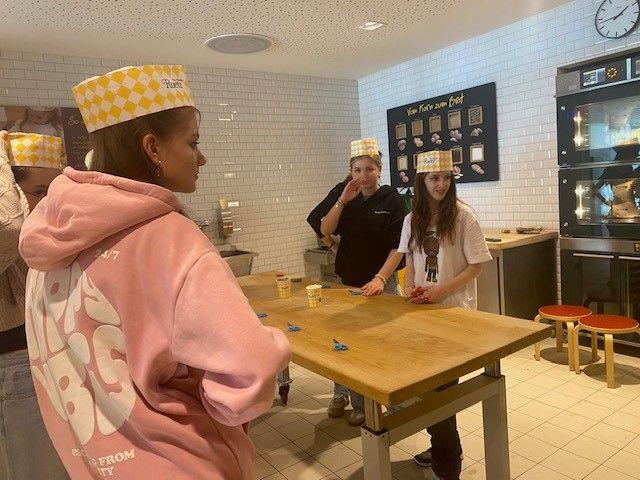 Am 11.04.25 besuchten wir mit den Schüler:innen des Clusters Dienstleistung das Traditionsunternehmen Bäckerei Ruetz in Kematen. Die Lehrlingsbeauftragte Frau Karin Abfalterer führte die Jugendlichen auf einfache Weise in die „Kunst des Brotbackens“ ein und sprach - im Anschluss an die praktische Arbeit – über die Möglichkeiten einer Lehre beim Bäcker Ruetz.