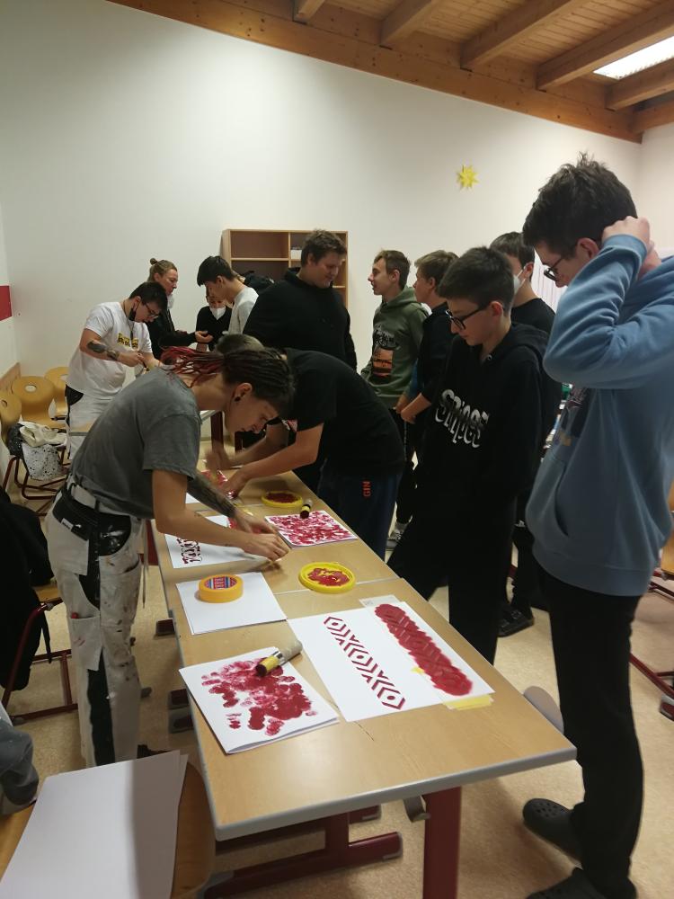 Die Vorstellung von Lehrbetrieben in unserer Region, Schwerpunkte der Ausbildung, historische Maltechniken, Dekormalerei und Funktionsbeschichtung, Werkzeugkunde, Schablonentechnik und Farbenlehre waren zentrale Themen dieses Vortrages. Ein bestens vorbereiteter Stationenbetrieb ermöglichte praktisches Mitwirken unserer Schüler:innen.