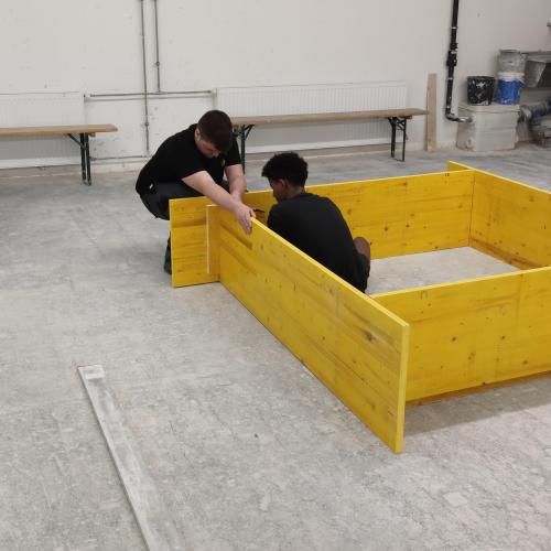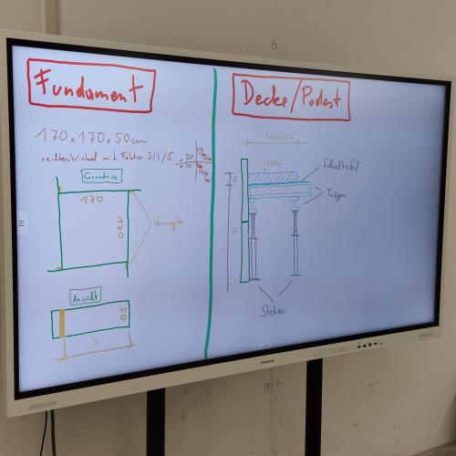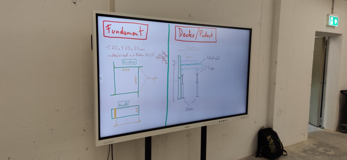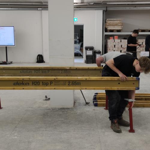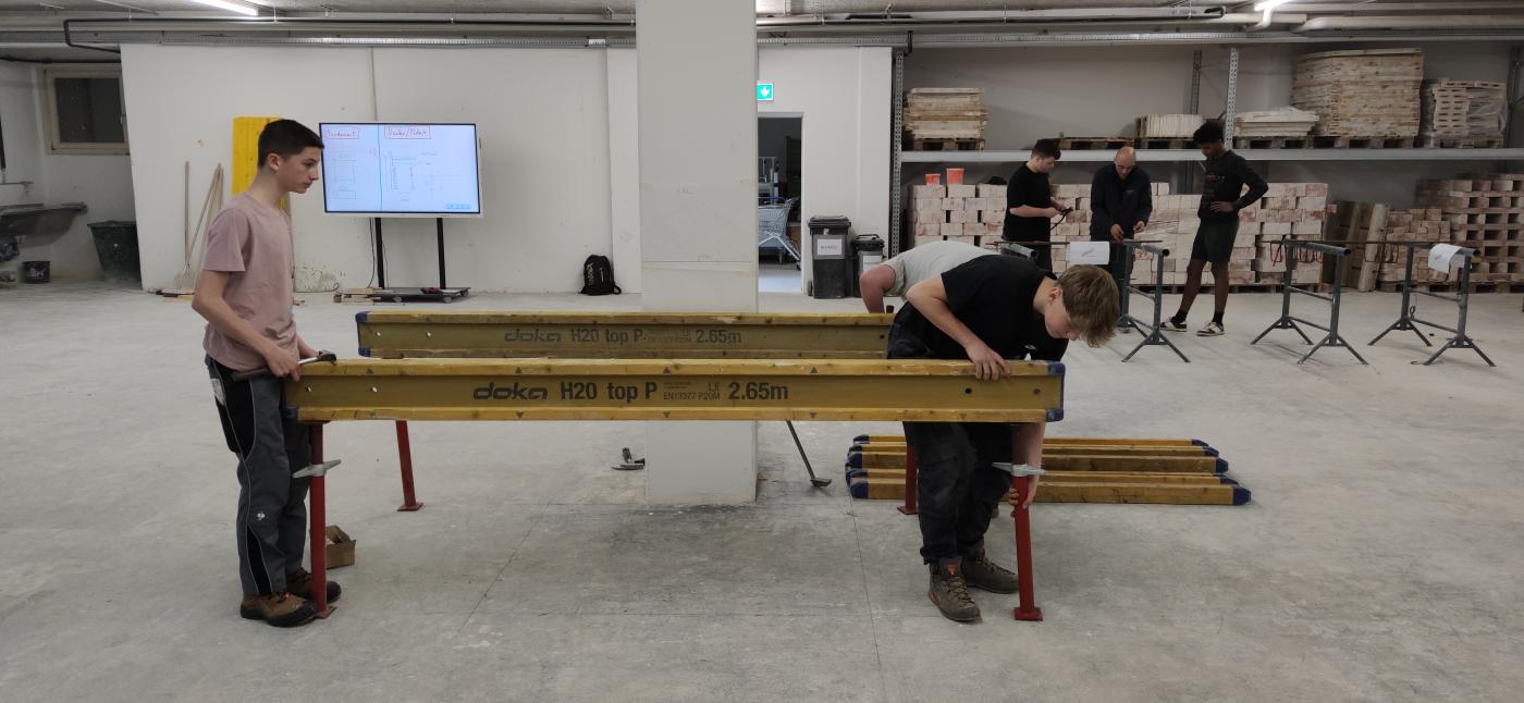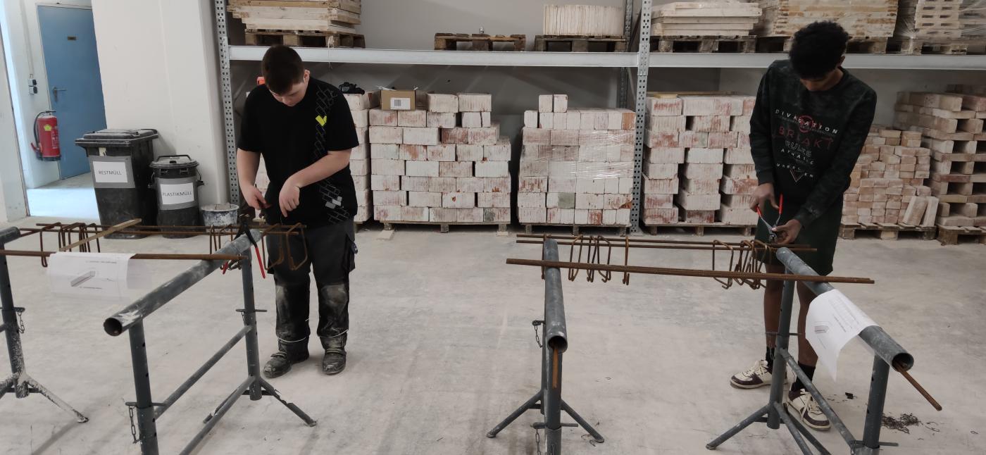 Selbstständiges Binden von Eisenkörben für Unterzüge und das Schalen eines Podestes für eine Treppe genau nach vorgegebenen Plänen standen auf dem Programm.